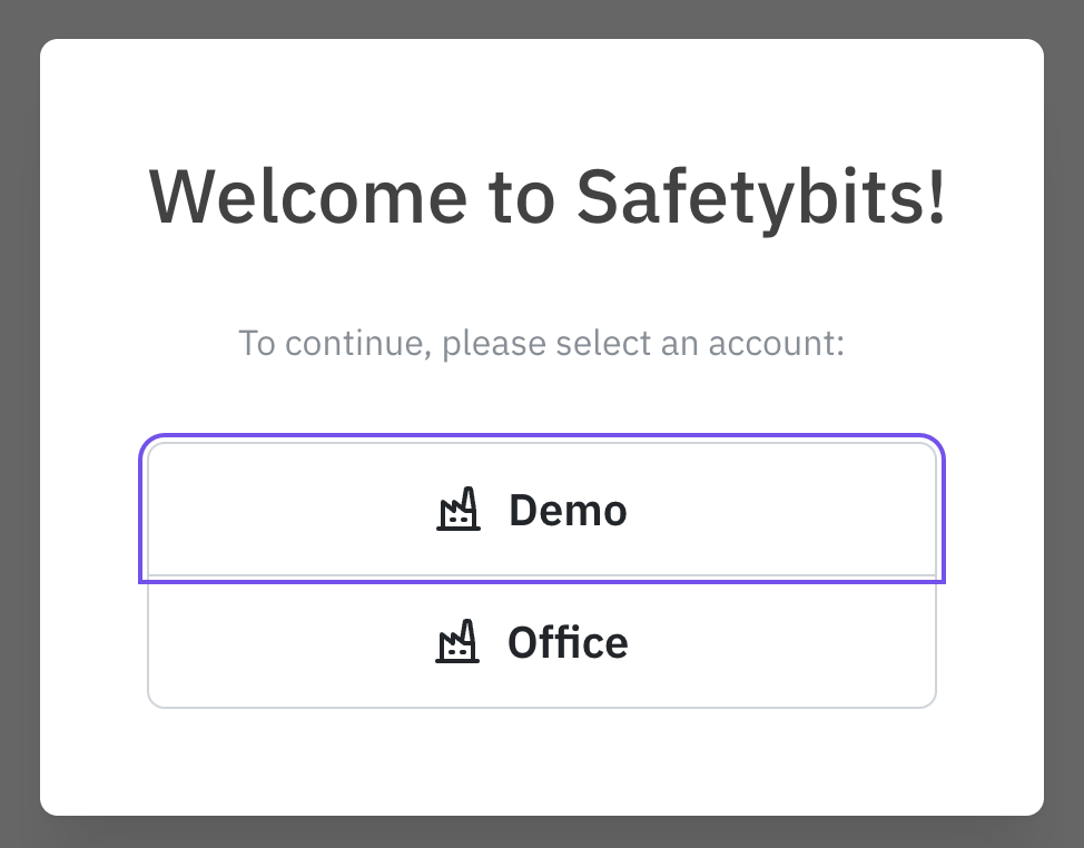 If your account is associated with multiple facilities, you’ll encounter an account selector screen after successful login. This screen allows you to choose the specific facility you want to manage, providing seamless navigation across your organization’s infrastructure.