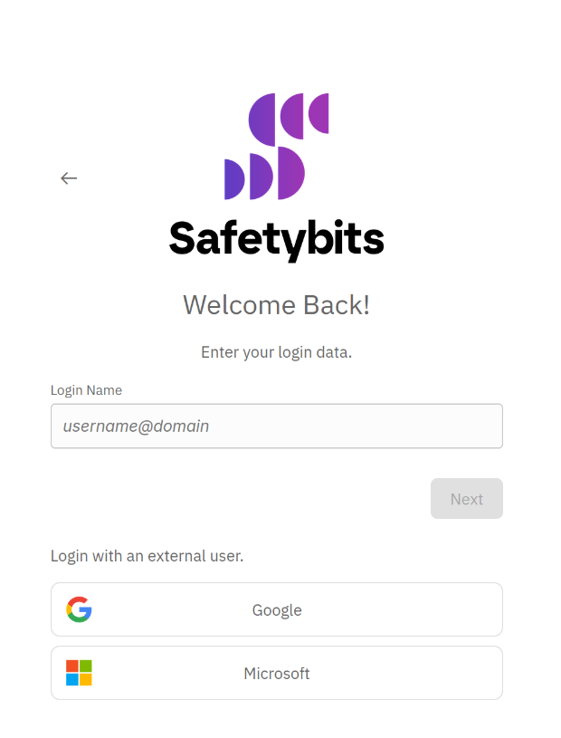 Safetybits supports authentication via External Identity Providers (IdPs), allowing users to log in using their Microsoft or Google accounts. This Single Sign-On (SSO) functionality simplifies access management, improves security, and aligns with enterprise authentication policies.
