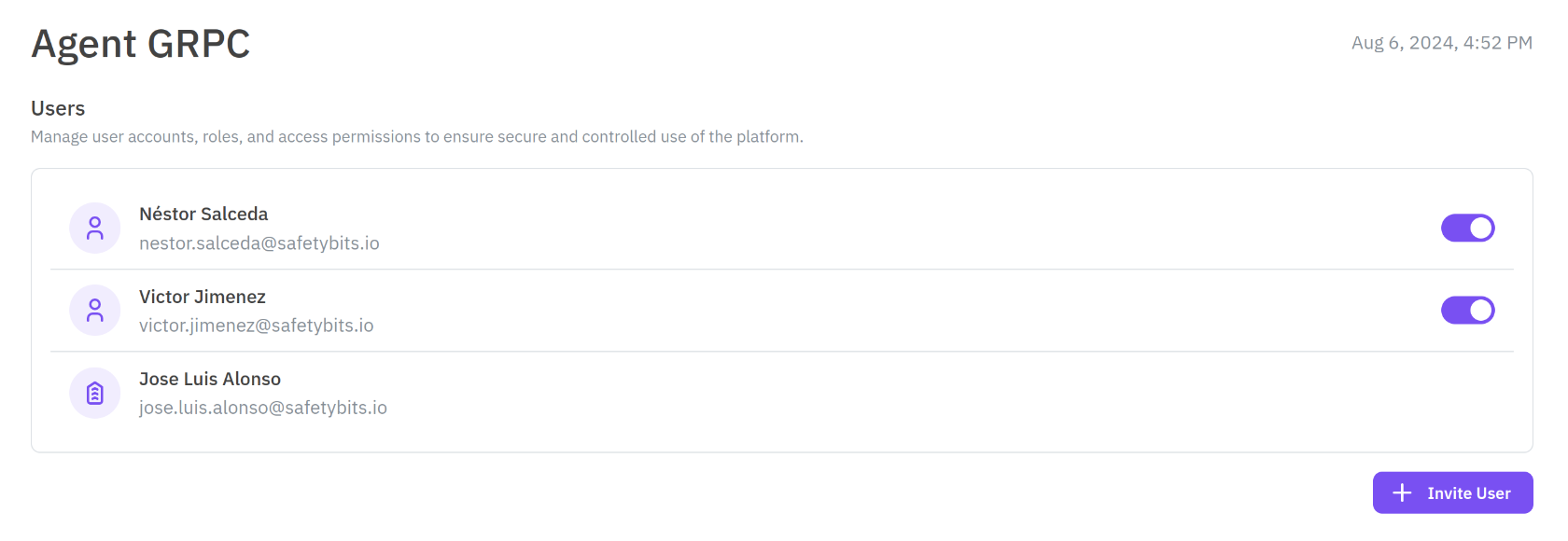 The Users section in the settings page allows for seamless management of facility access. With a simple toggle, you can enable or disable access for existing users, ensuring control over who can view facility data.