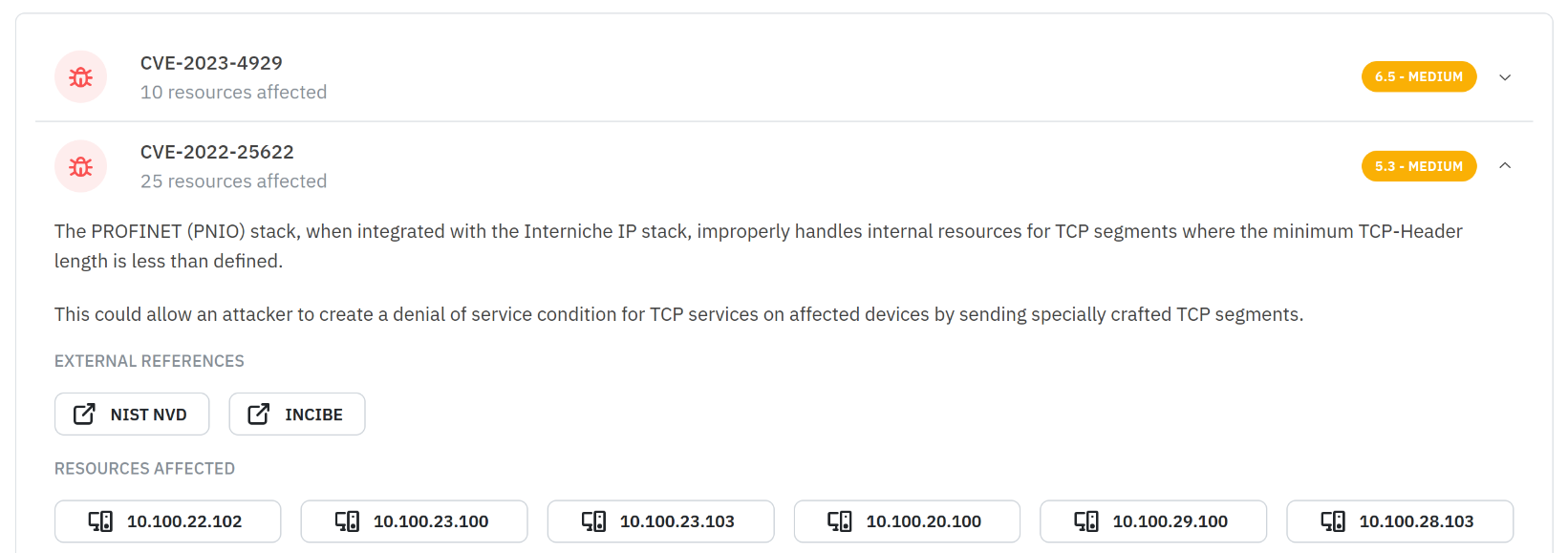 - For each device, you can view its metadata, such as name, IP address, and firmware version, to understand the scope of the vulnerability.